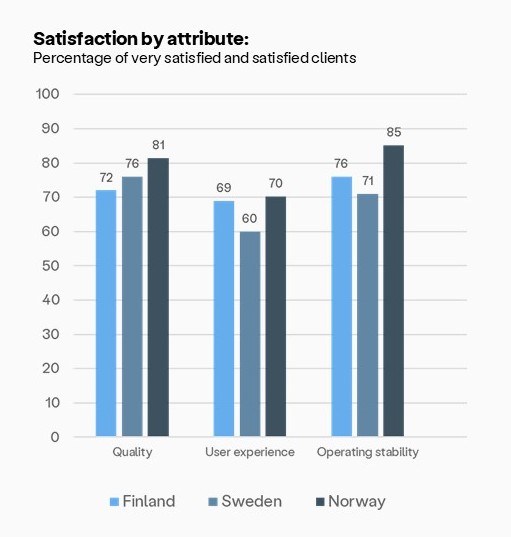 Vi har gjennomført vår årlige kundetilfredshetsundersøkelse for å få bedre innsikt i hvordan kundene og brukerne av systemene våre opplever tjenestene, kundeservicen og våre ulike digitale løsninger i Finland, Sverige og Norge. Mens kundetilfredsheten holder seg stabil på konsernnivå, er tilfredsheten blant de norske kundene stigende.